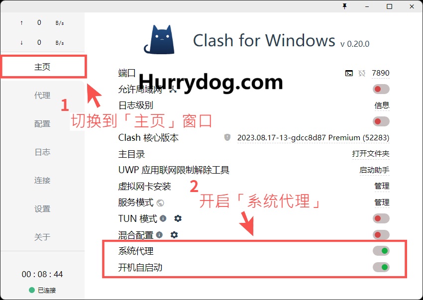 接下来,前往「主页」设置,开启「系统代理」,即可启用海外代理,畅享所有海外资源~