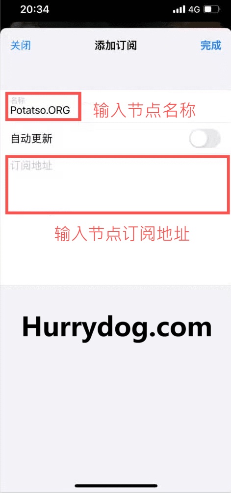 在添加节点页面,点击「订阅」。在弹出的窗口中,为机场输入名称,并在订阅地址处粘贴复制的节点链接。