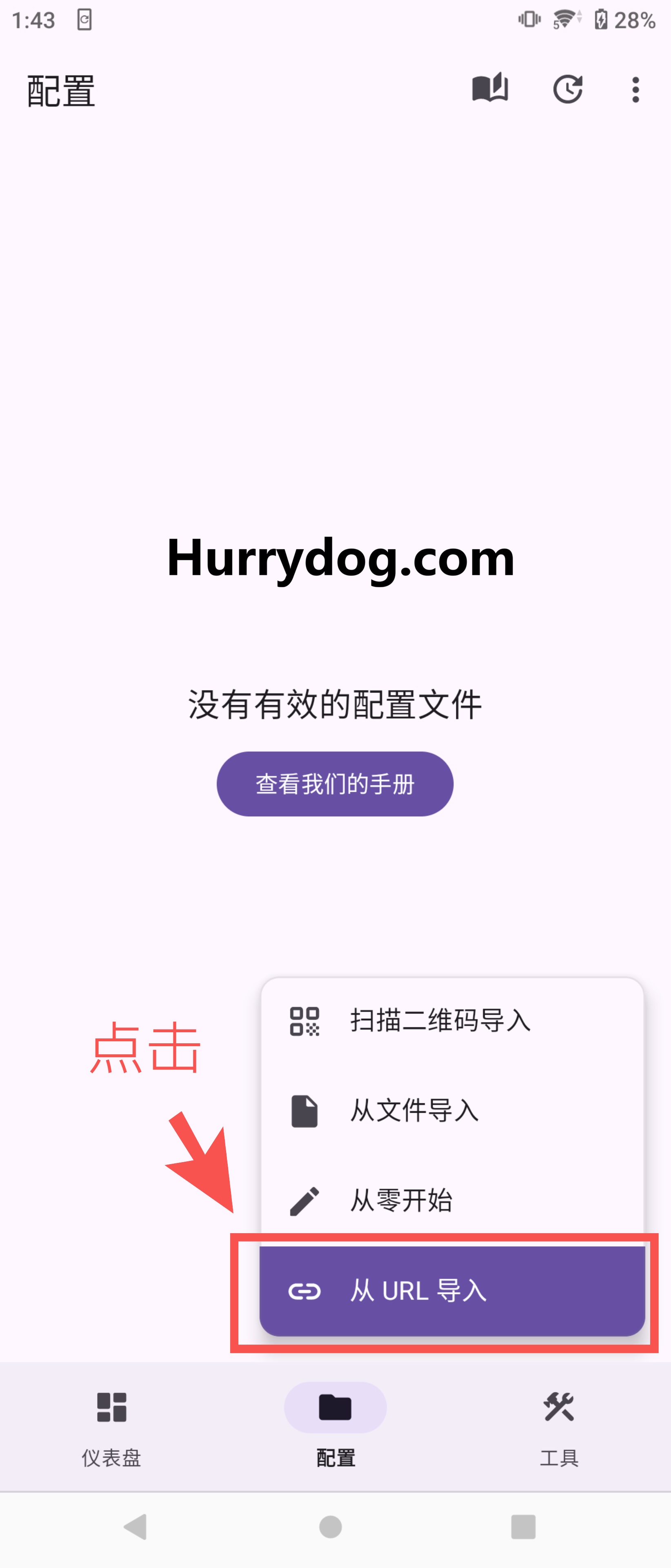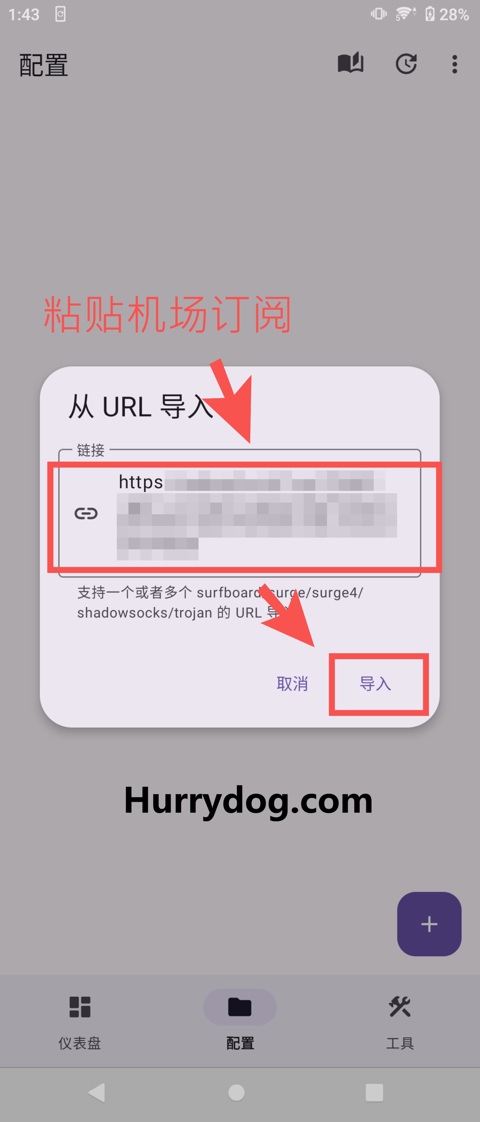 选择从URL导入,将复制的订阅地址粘贴进去。