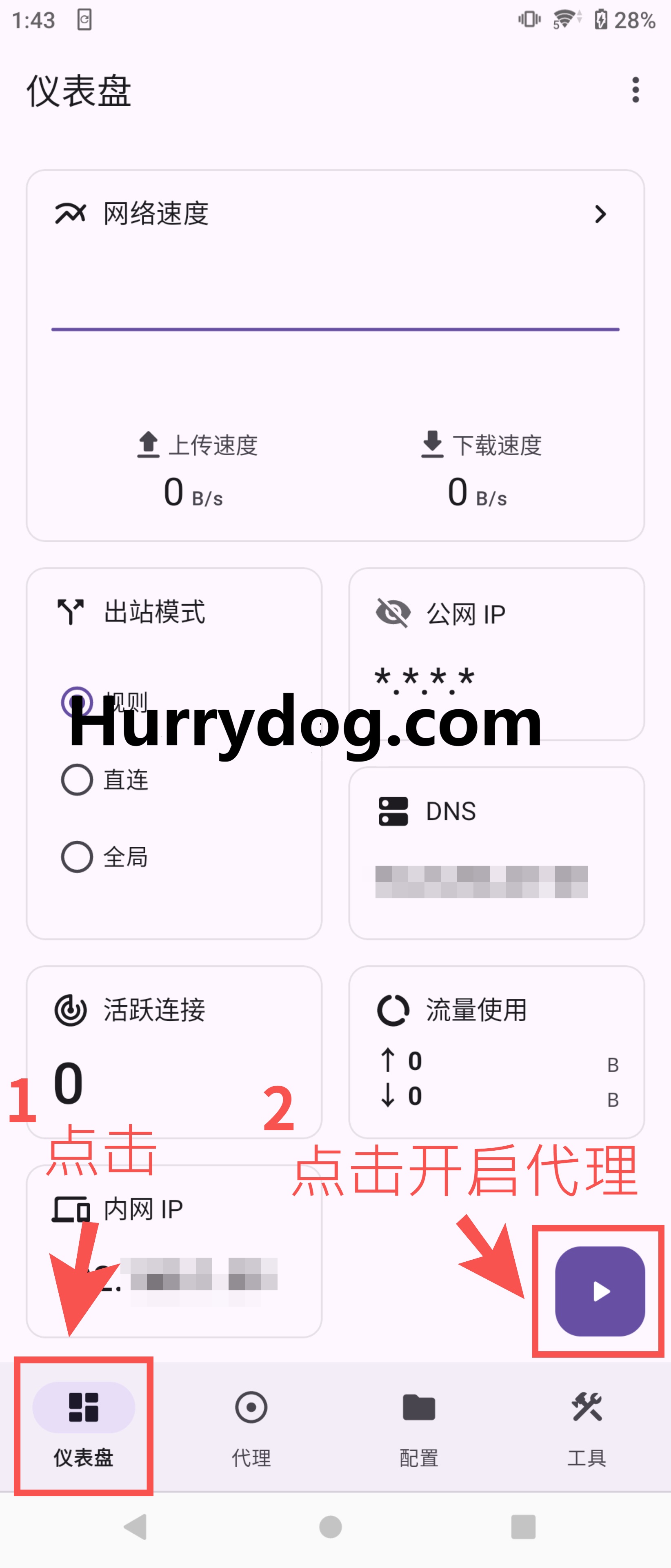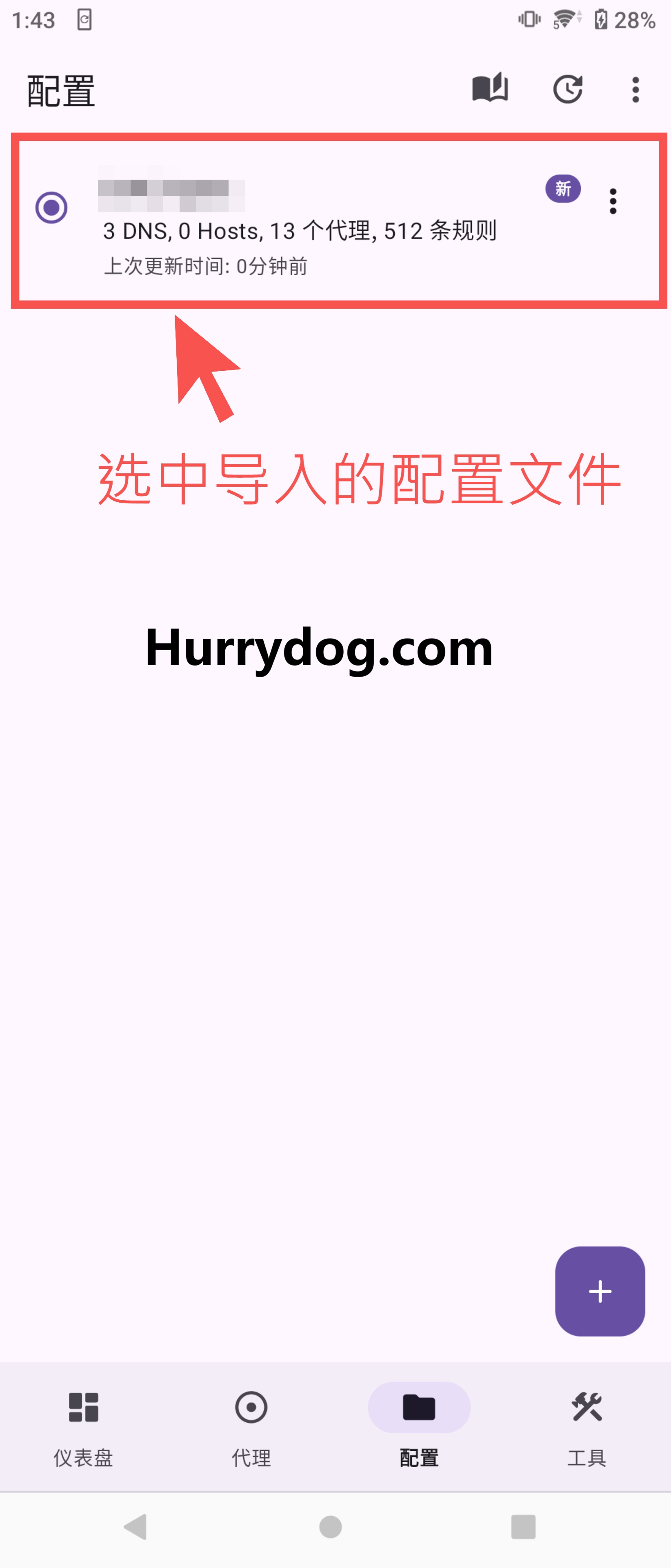 选择导入的配置文件,返回仪表盘,点击开启代理。