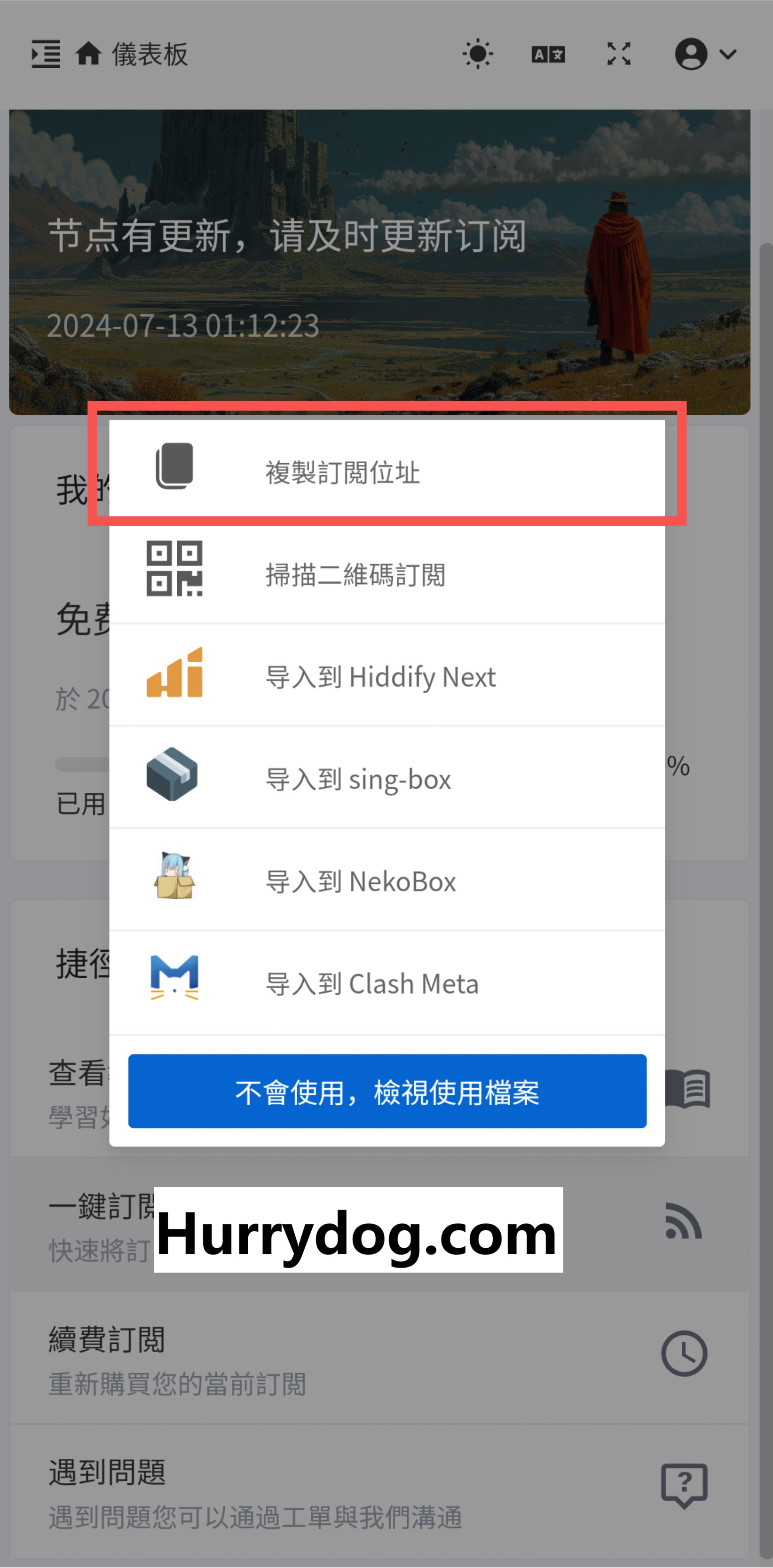 登录机场服务,复制订阅链接。