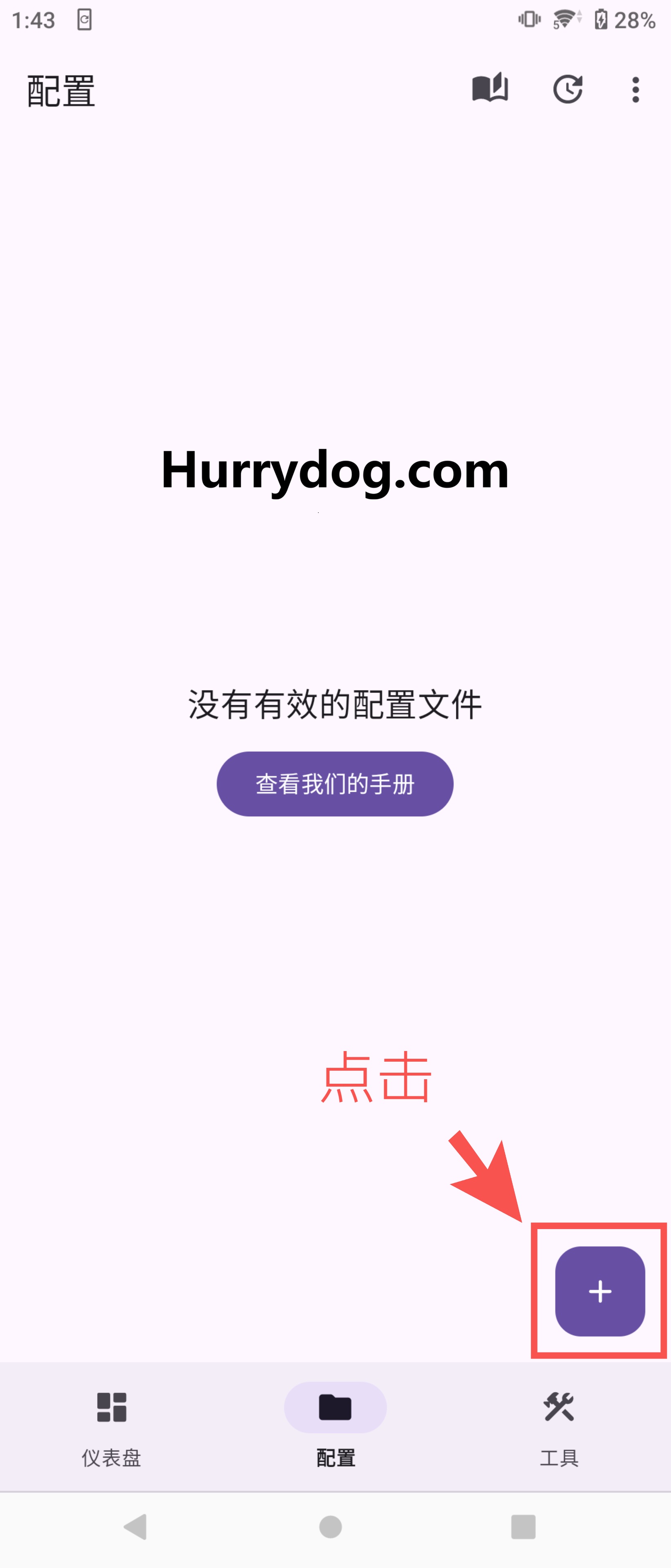 打开Surfboard客户端,点击「配置」,选择右下角的「加号」按钮。