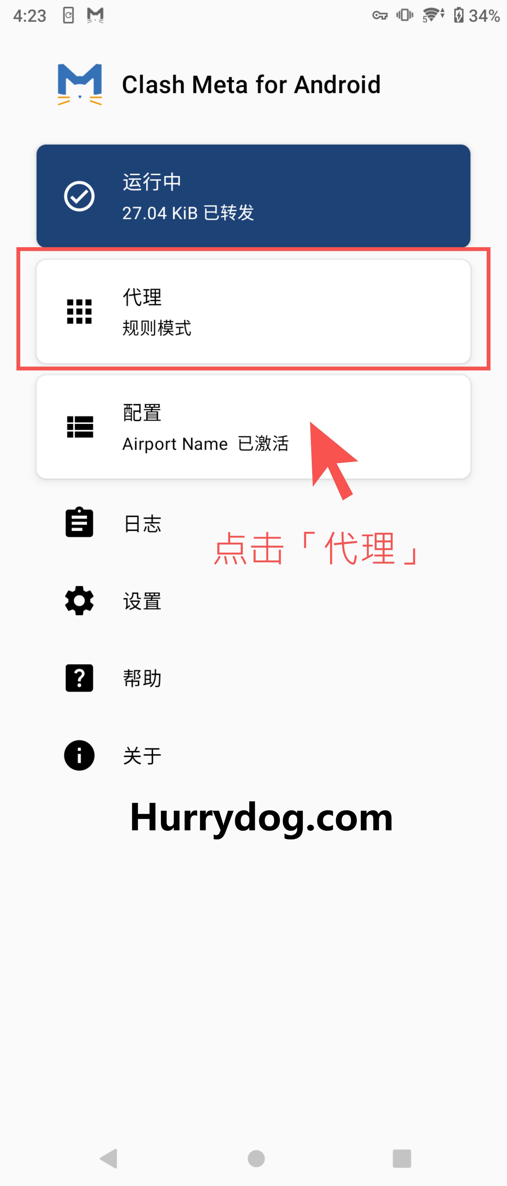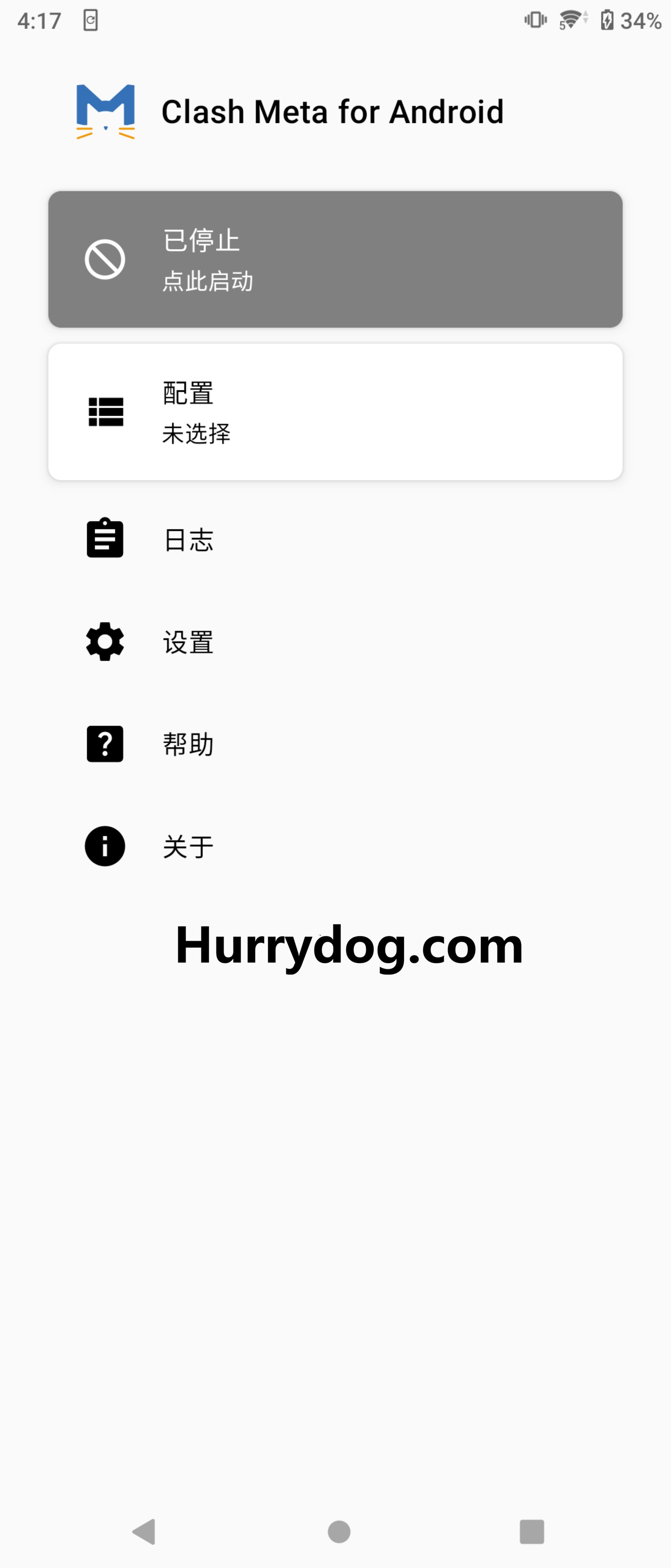 准备好 Clash Meta for Android 的代理节点和订阅链接后,安装成功后将看到默认页面。