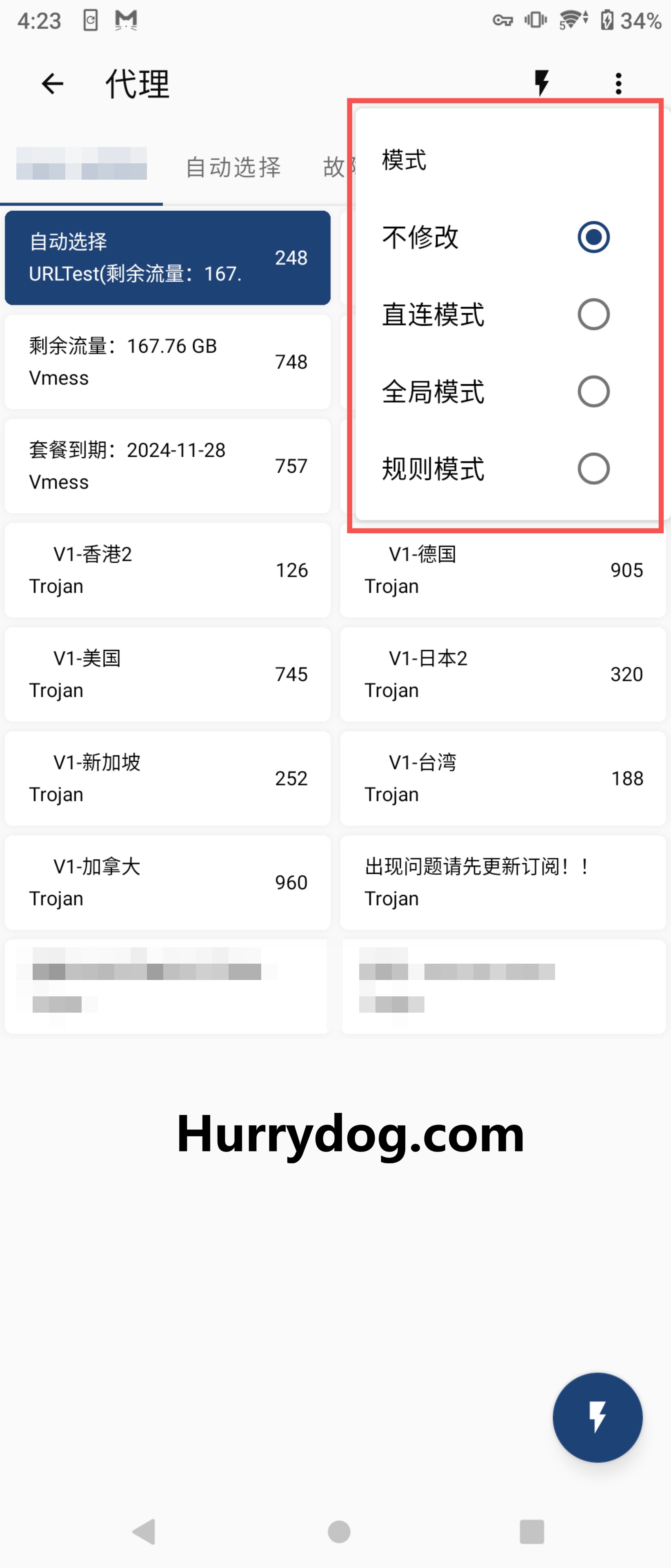 ※ 规则模式:仅墙外网站和应用使用代理,墙内网站不走代理流量。(默认)
